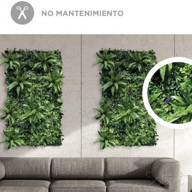 El muro verde Iguazú es perfecto para quienes buscan una decoración natural y duradera. Su aspecto selvático y realista lo convierte en la opción ideal para muros decorativos en interiores o exteriores, brindando vida, textura y estilo sin necesidad de mantenimiento.