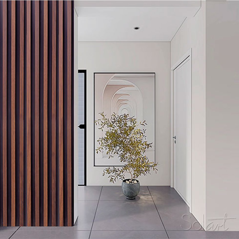 Fabricado con una mezcla de fibras de madera y polímeros plásticos, lo que lo hace resistente a la humedad, duradero y de bajo mantenimiento. Su apariencia puede imitar la madera natural, pero sin los inconvenientes de esta, siendo ideal para interiores modernos y elegantes.