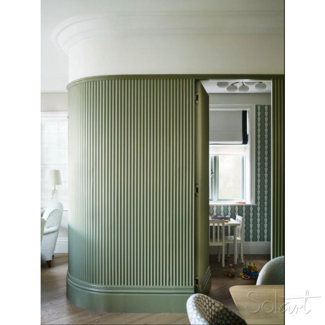 Revestimiento de pared fabricado en PVC o WPC con diseño de formas curvas o semicirculares que aporta textura y profundidad al espacio.
