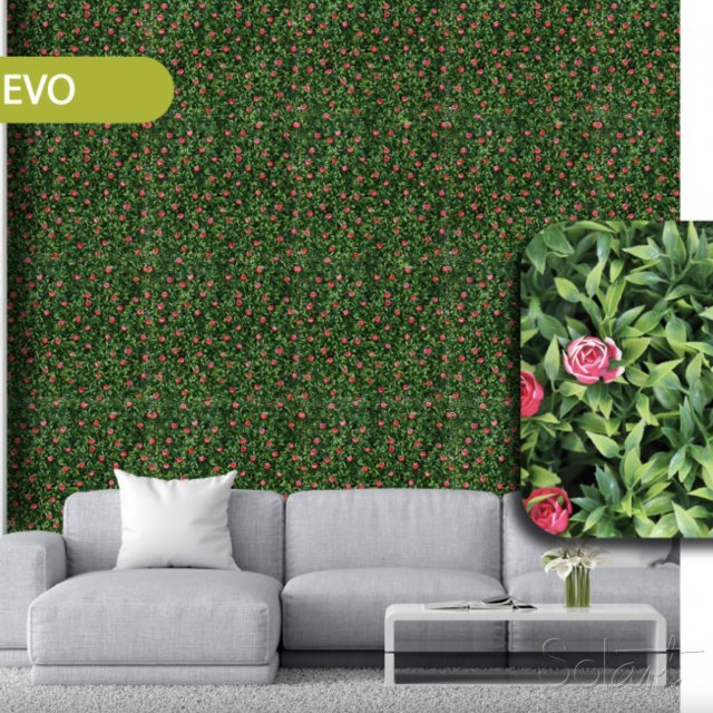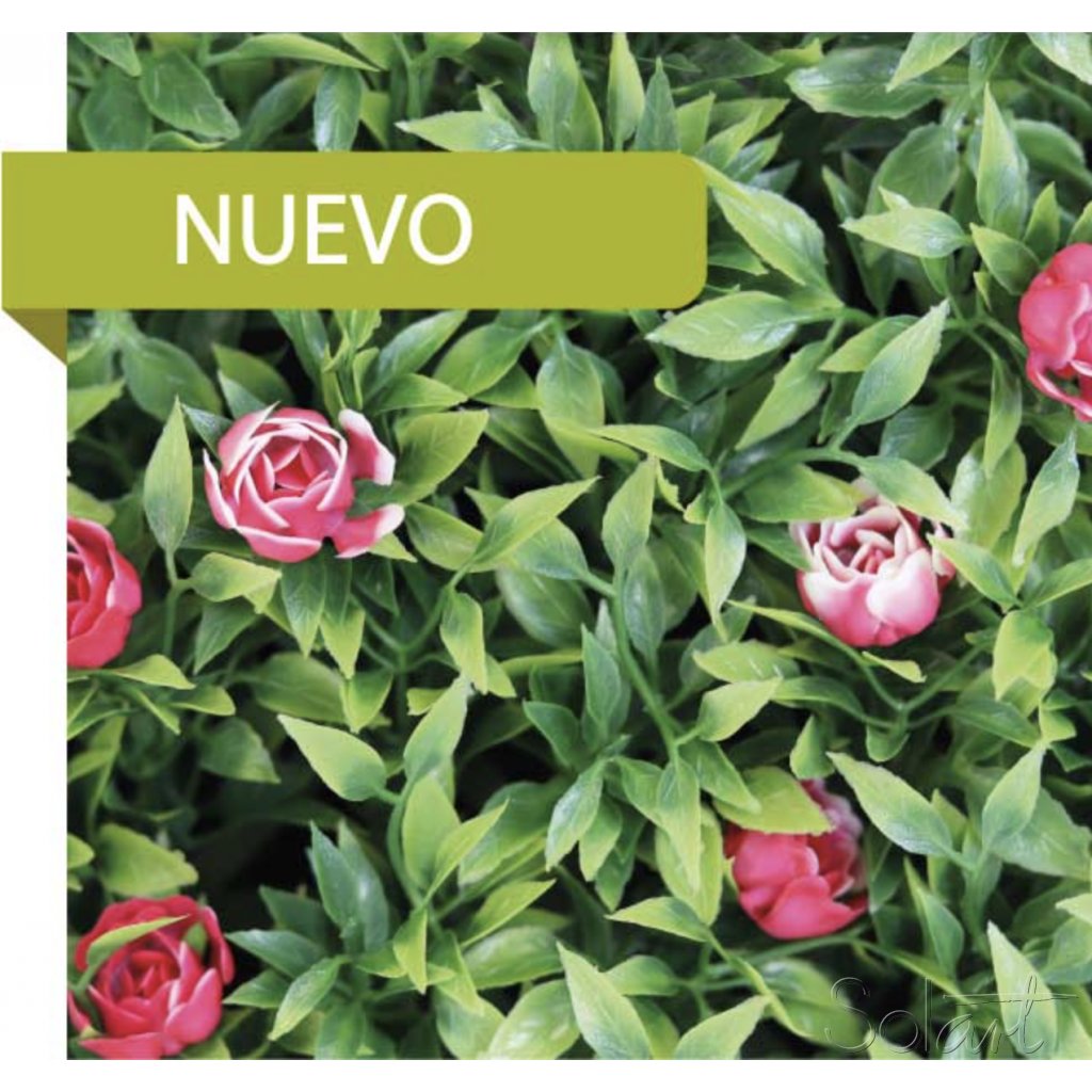 Este follaje de la línea Premium es ideal para quienes buscan un toque natural y elegante. Con una mezcla de tonos verdes y el llamativo color rosa del rosal Pitimini, aporta dinamismo y frescura a cualquier espacio. Además, ofrece fácil instalación, protección UV, es libre de mantenimiento y perfecto tanto para interiores como para exteriores.