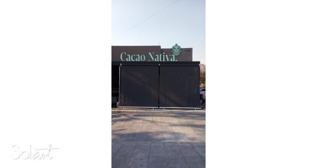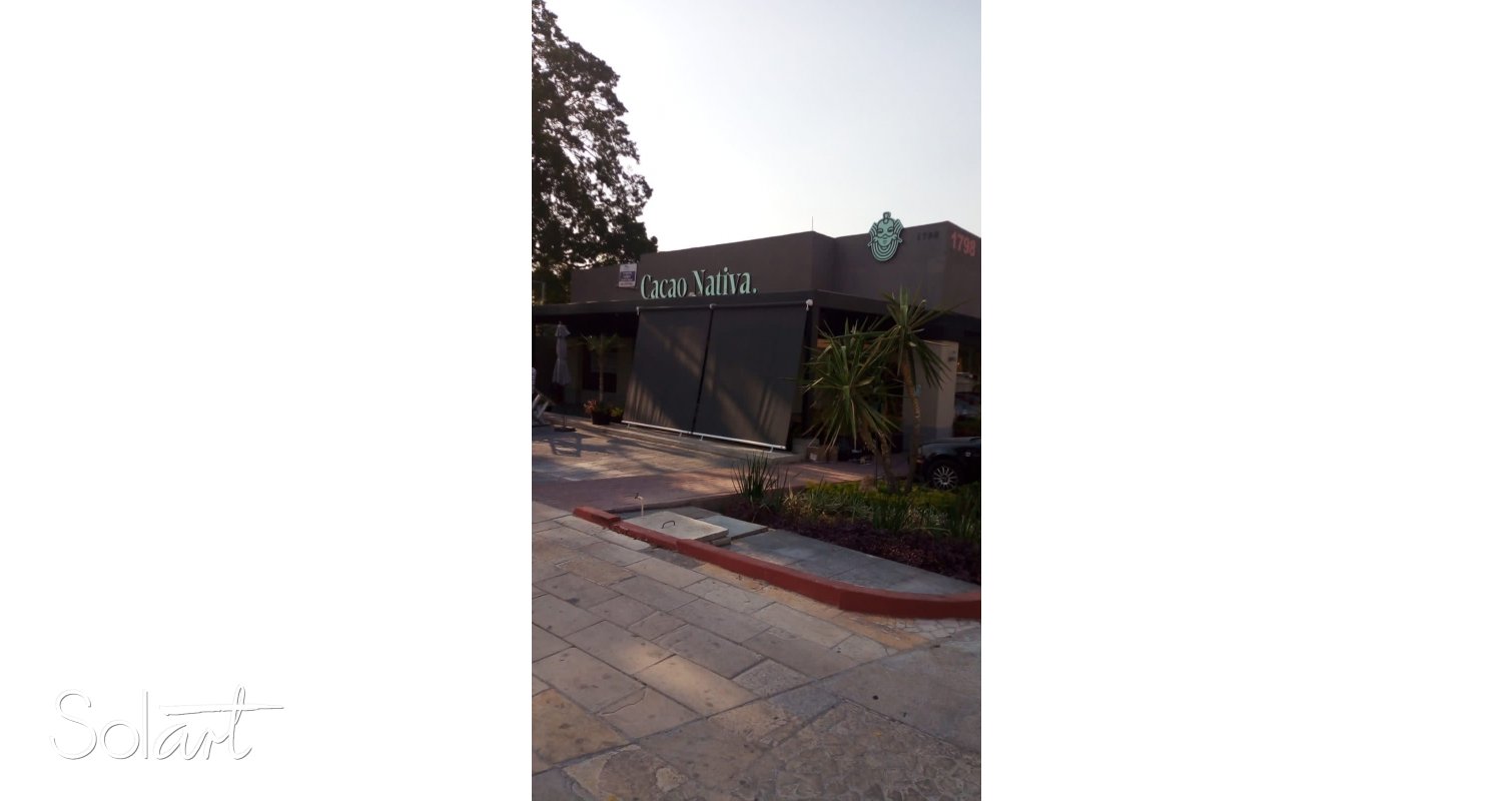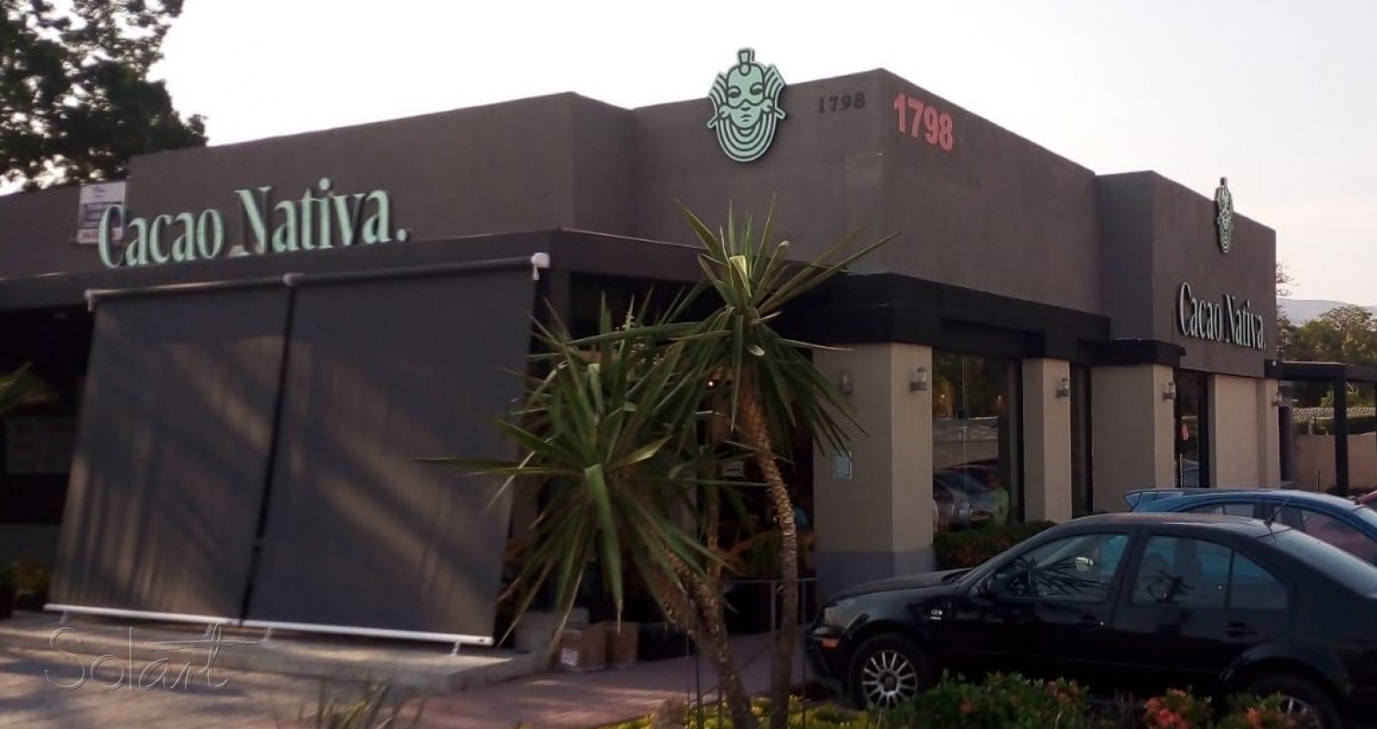 Los toldos se integran de forma discreta a la fachada, aportando funcionalidad y un toque elegante que complementa el diseño contemporáneo del establecimiento.