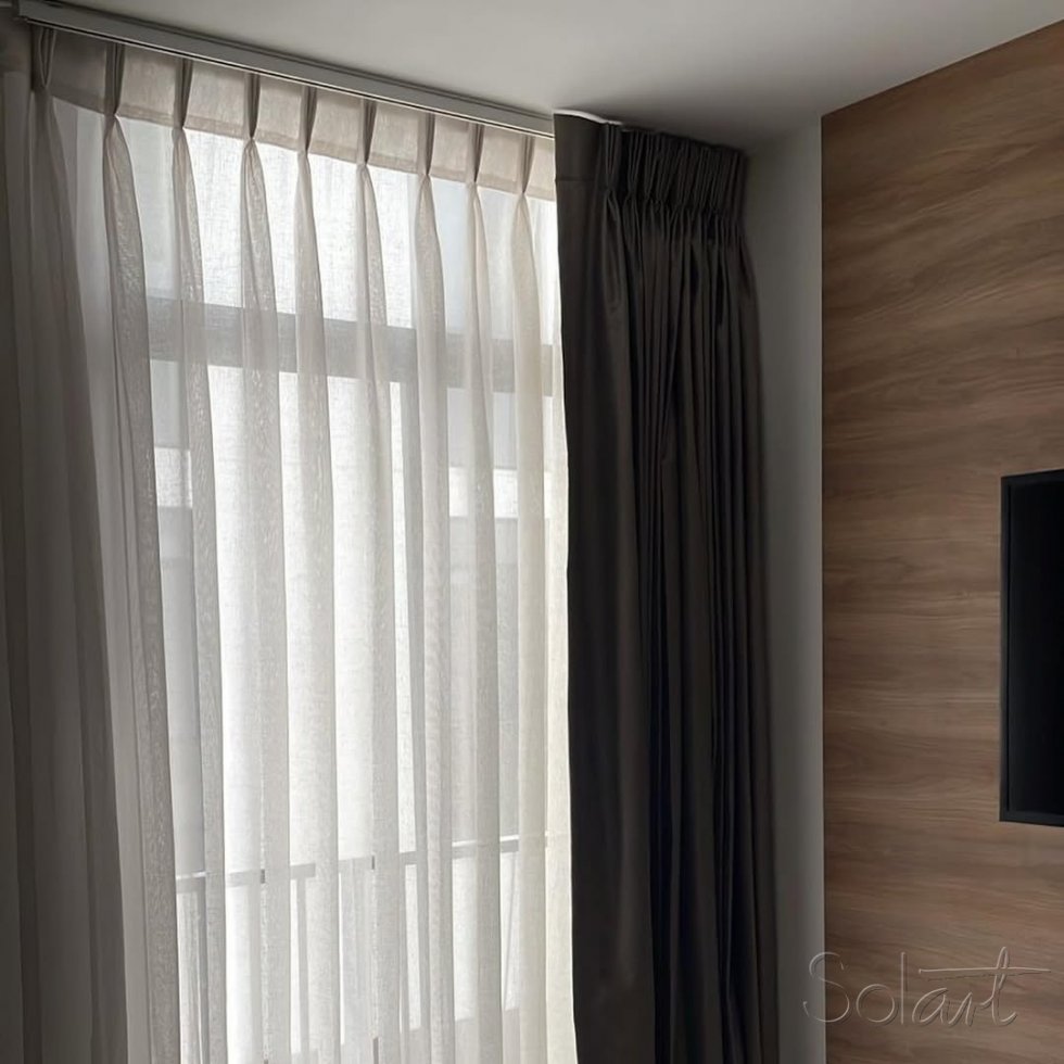 Es un estilo clásico y elegante de cortina que se caracteriza por sus pliegues regulares y uniformes en la parte superior. Contamos con telas traslúcidas, semitraslúcidas, dim out y black out.