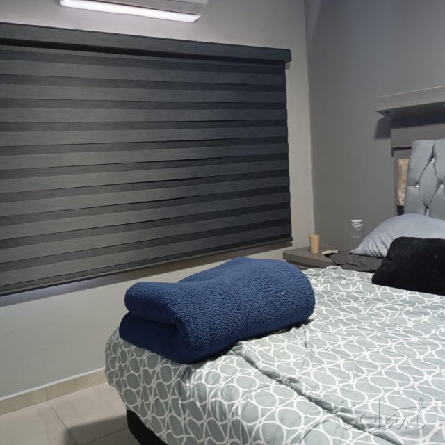 - Black out: Bloquea completamente el paso de la luz. Uso recomendado: Habitaciones, oficinas con proyector o televisión, o cualquier lugar donde se desee descansar o trabajar sin interferencia de luz exterior.