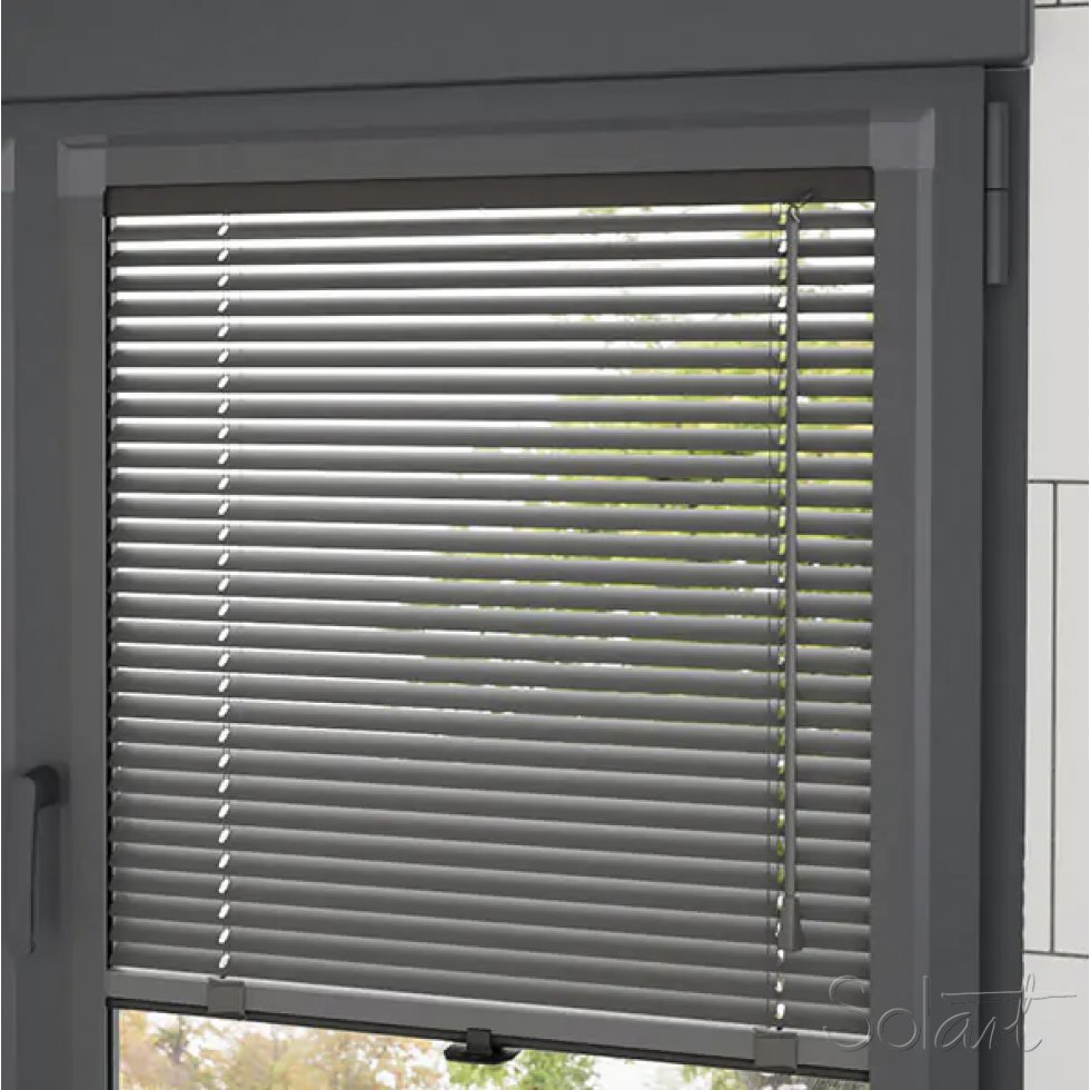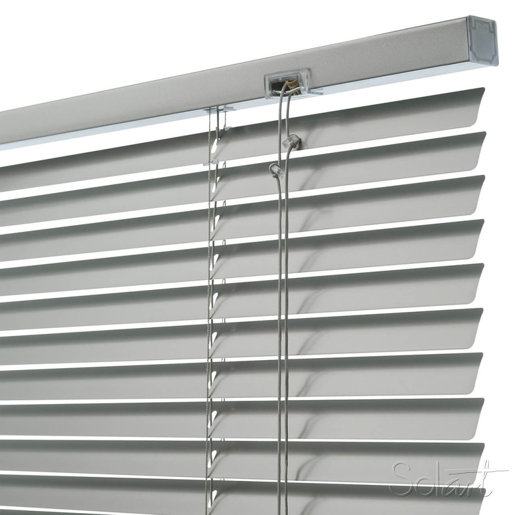 Persianas con lamas horizontales de aluminio ligeras, resistentes y fáciles de limpiar, ideales para uso residencial o comercial.