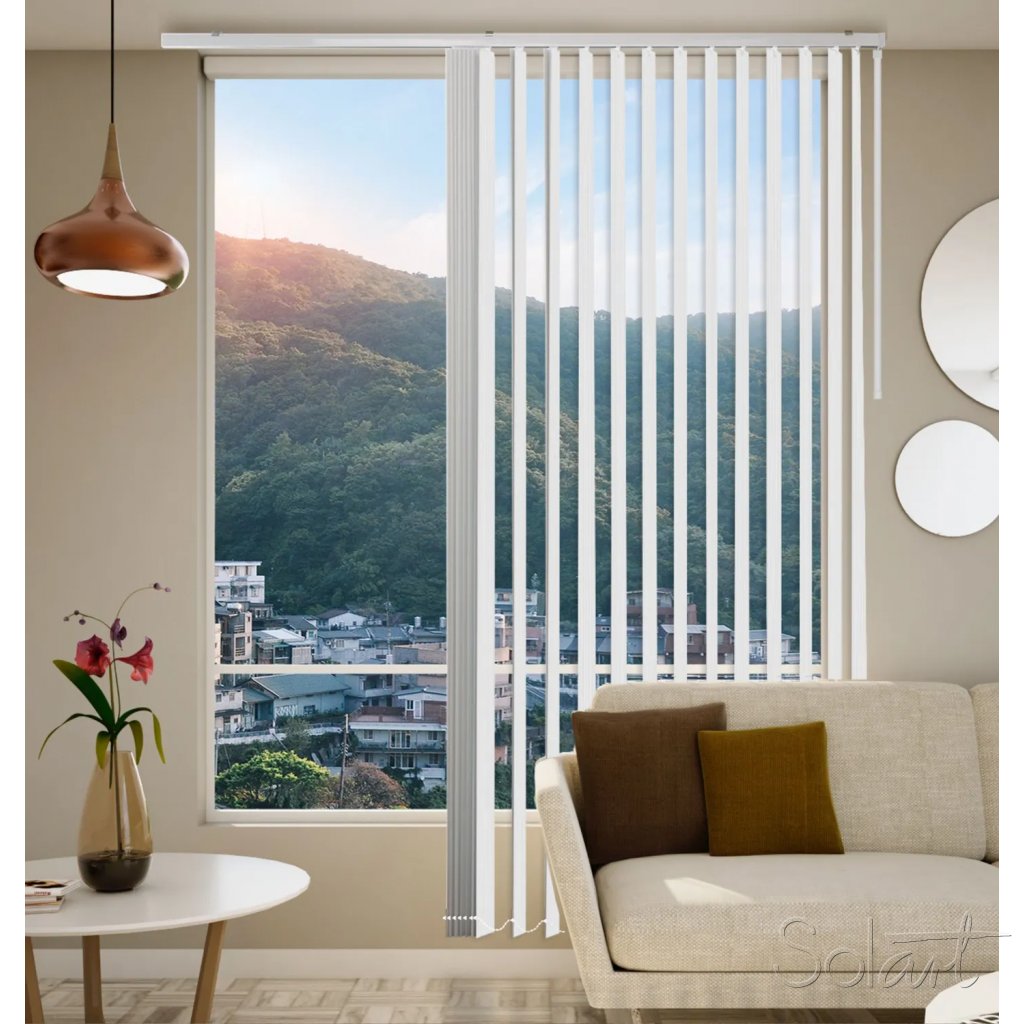 Utiliza láminas de cloruro de polivinilo (PVC) de forma vertical para cubrir ventanas o puertas. Estas persianas son conocidas por su durabilidad, facilidad de limpieza y capacidad para controlar la luz y la privacidad.