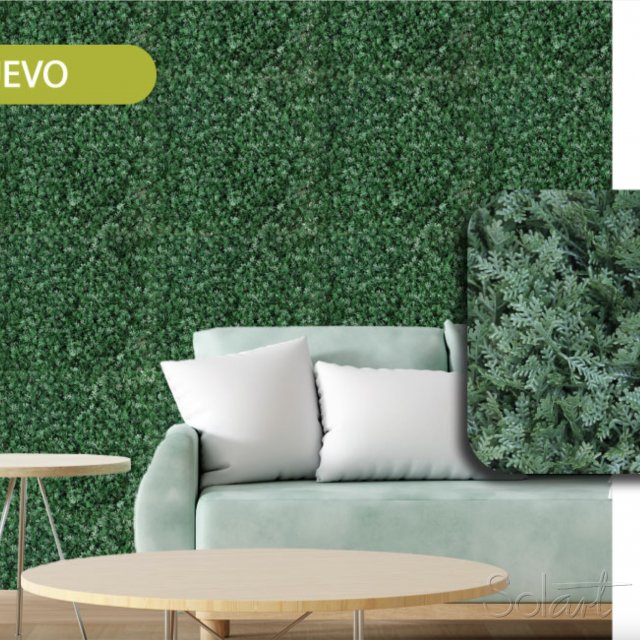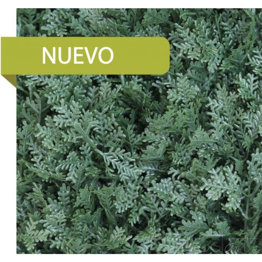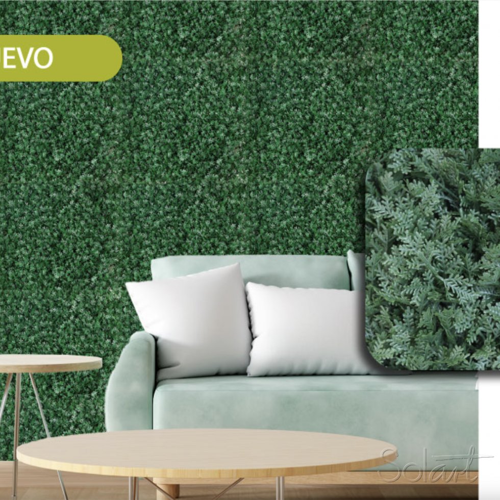 Este muro verde inspirado en la hoja del árbol de Sabina aporta una estética natural y elegante a cualquier ambiente. Su follaje escamoso, con forma lineal similar a agujas diminutas, ofrece una textura rica y realista que embellece tanto interiores como exteriores. Gracias a su protección UV, es resistente al sol, no requiere mantenimiento, y además ayuda al ahorro de agua. Es ideal para proyectos residenciales, comerciales o decoraciones verticales modernas.