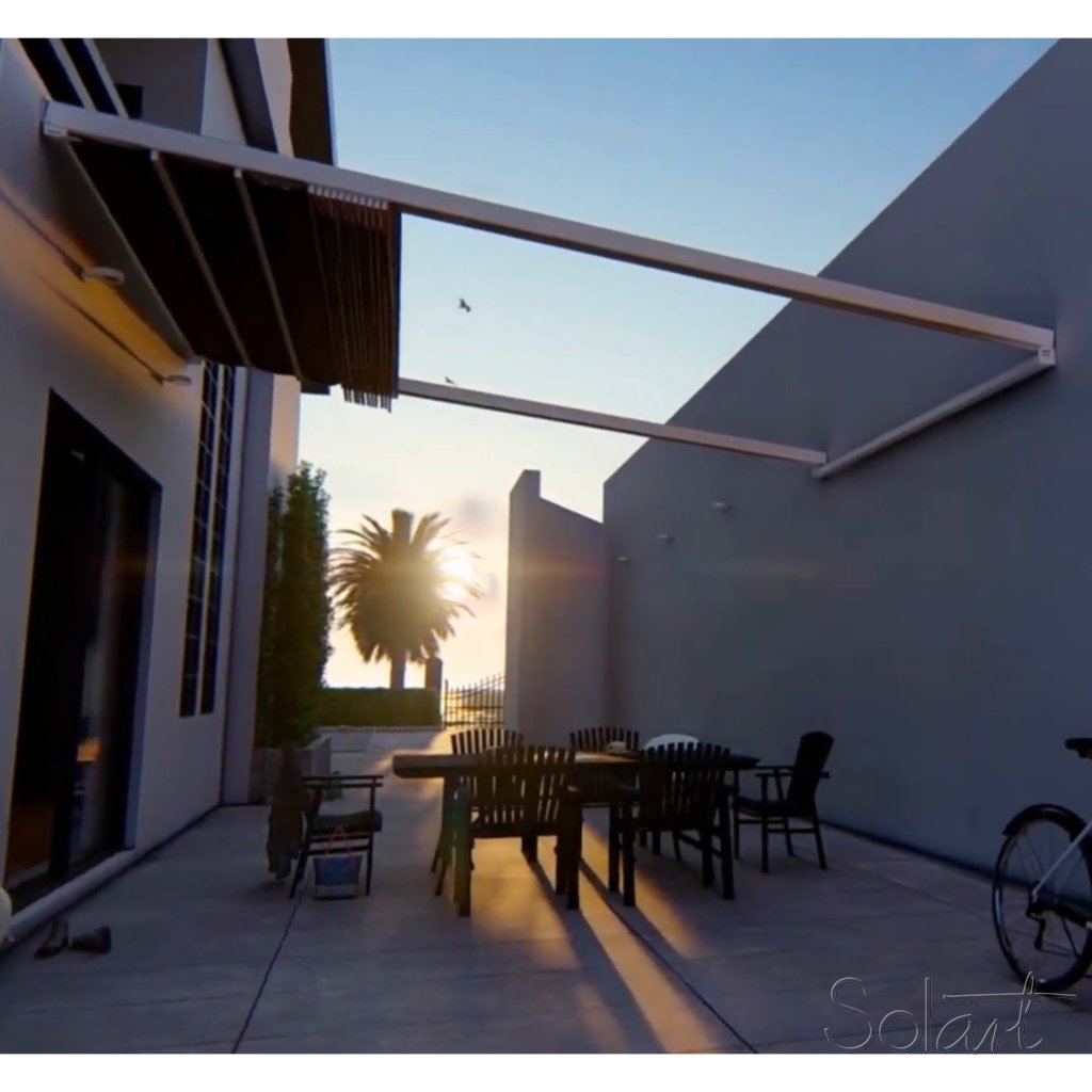 La cubierta se fabrica con tela acrílica impermeable, un tejido técnico de poliéster tratado que repele el agua, bloquea rayos UV y mantiene la ventilación. Perfecta para espacios que requieren sombra eficiente y protección contra la lluvia ligera sin comprometer la estética ni la circulación del aire.