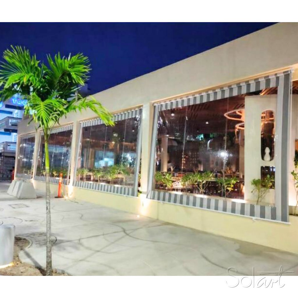 Ideales para terrazas, balcones y áreas abiertas, estos toldos brindan una barrera contra el viento, la lluvia y los rayos solares sin bloquear la vista. Disponibles con sistema manual o motorizado, son perfectos para restaurantes que buscan confort y elegancia mientras protegen sus áreas de insectos y el clima.