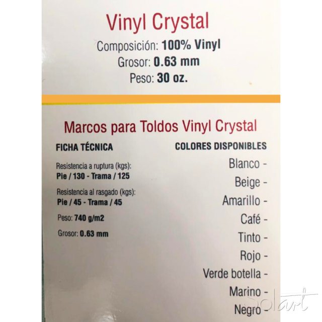 El "vinyl crystal" es un tipo de lámina plástica flexible comúnmente utilizado como material textil donde se requiere visibilidad y protección contra el clima, actúa como una barrera contra lluvia y viento.
