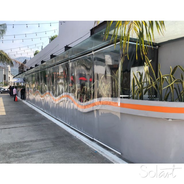 Ideales para terrazas, balcones y áreas abiertas, estos toldos brindan una barrera contra el viento, la lluvia y los rayos solares sin bloquear la vista. Disponibles con sistema manual o motorizado, son perfectos para restaurantes que buscan confort y elegancia mientras protegen sus áreas de insectos y el clima.